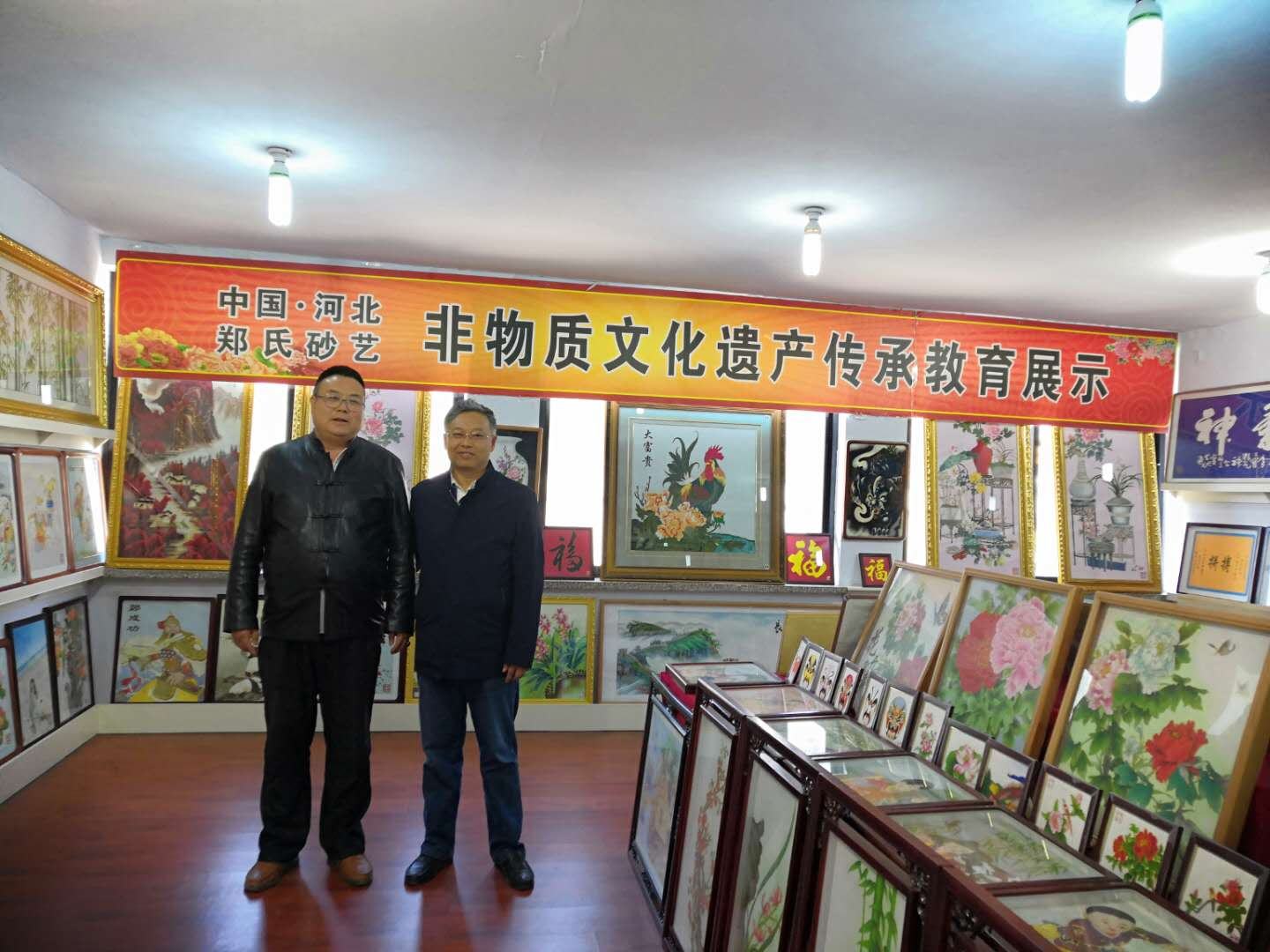 2019年5月6日,縣政協辦公室主任馬建軍來到鄭氏砂藝調研考察。馬主任在鄭總的陪同下考察了砂畫制作車間、書畫裝裱車間、榮譽展覽室并參觀了鄭氏砂藝非遺文化傳承教育展廳。