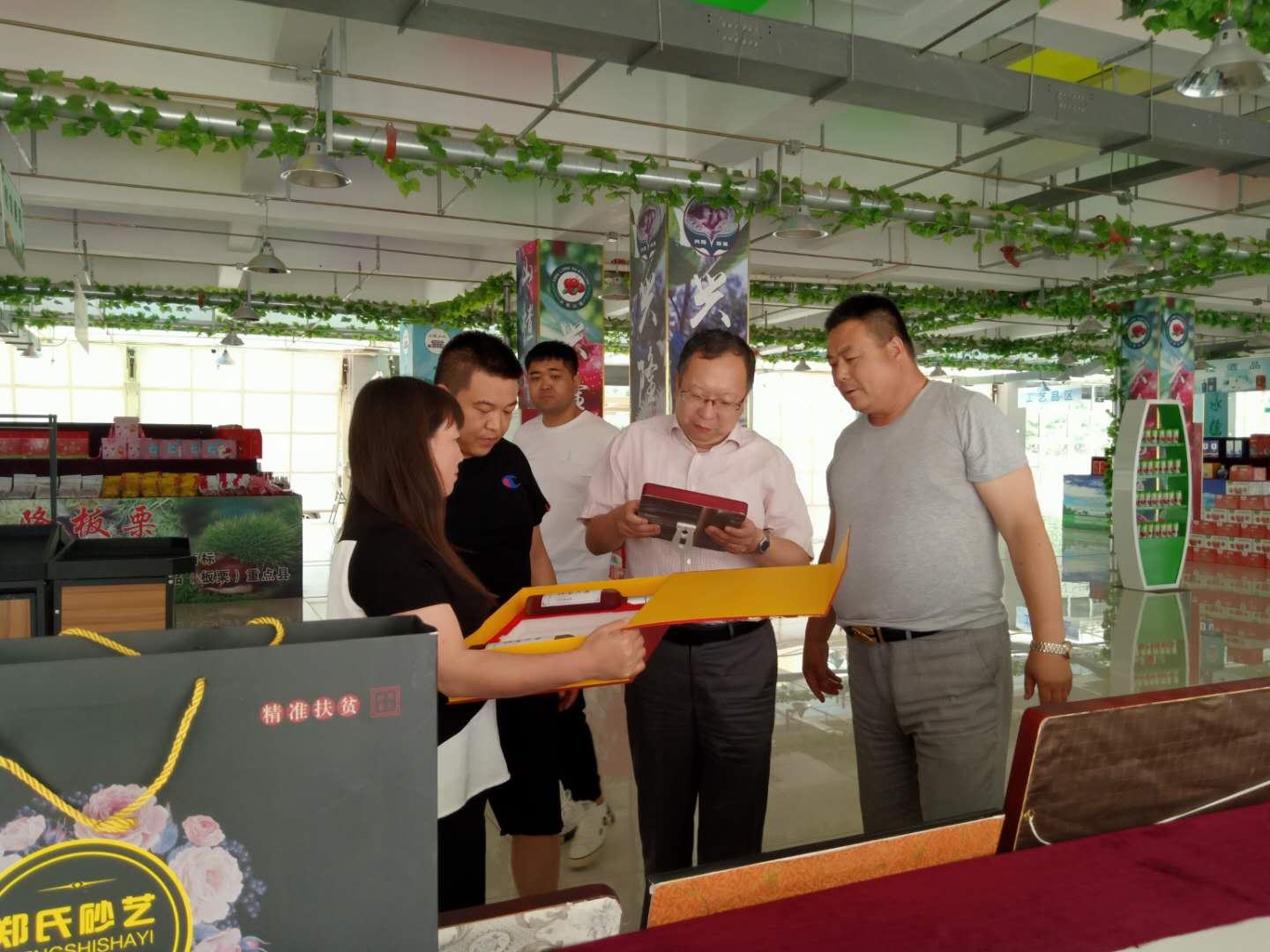 薛青松書記(右二)視察鄭氏砂藝扶貧系列產品