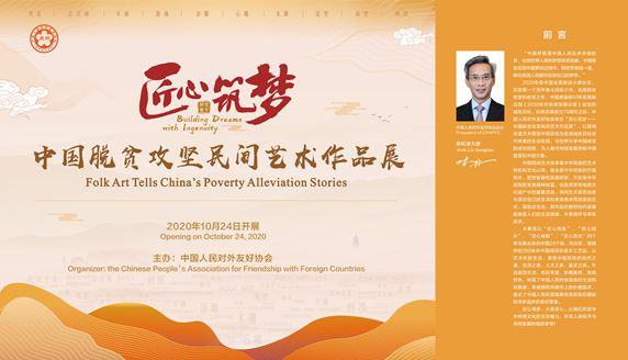由中國人民對外友好協會主辦的“匠心筑夢—中國脫貧攻堅民間藝術作品展”于10月24日(聯合國日)正式開幕。中國人民對外友好協會會長林松添大使題寫前言,聯合國代理駐華協調員桑愛玲女士向展覽發來賀詞。