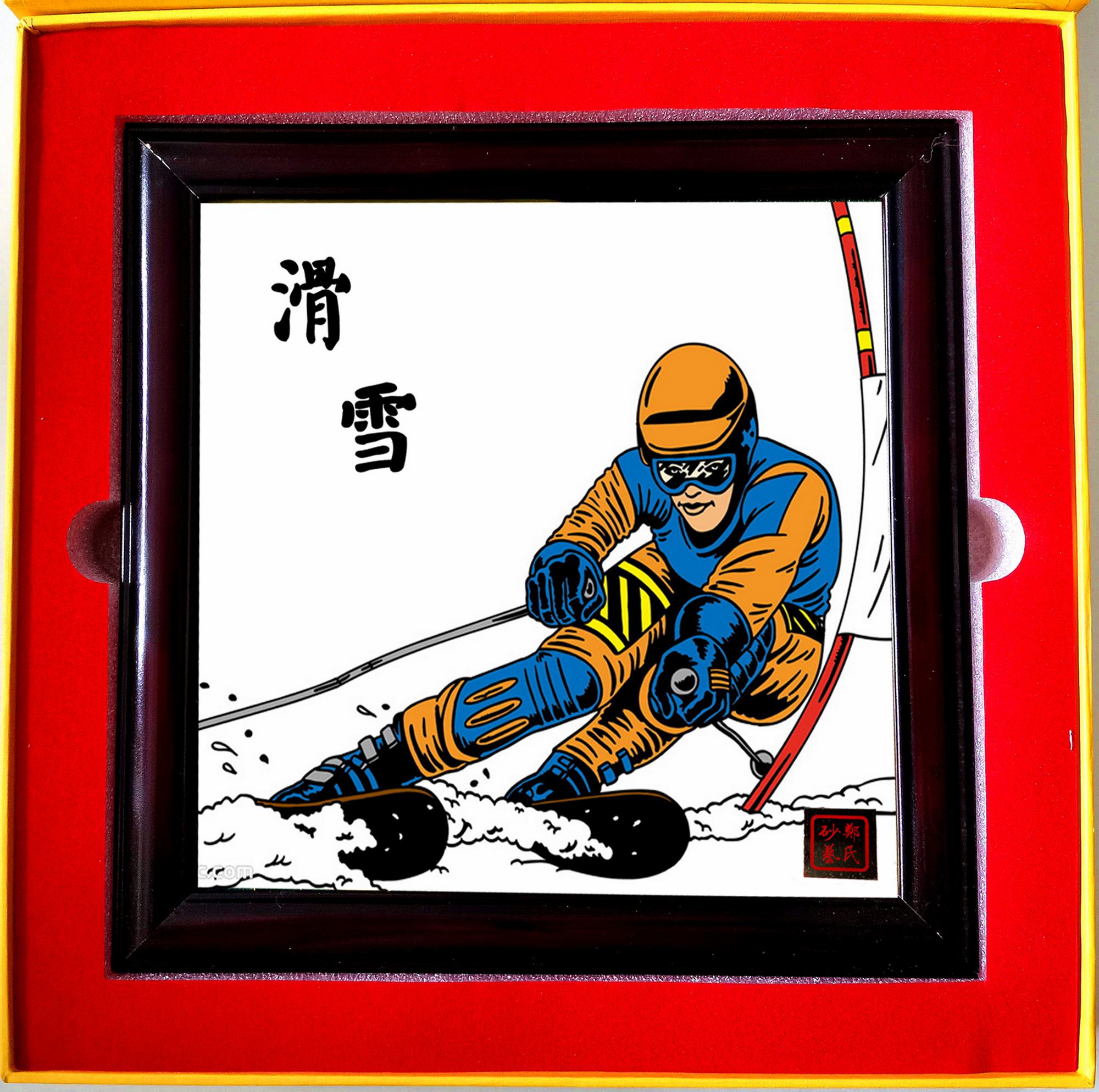 2022年北京冬奧會是我國重大歷史節點的重大標志性活動,也是河北省推動京津冀協同發展、雄安新區規劃建設、冬奧會籌辦“三件大事”之一。因此省群眾藝術館(省非遺保護中心)按照河北省文化和旅游廳的部署在全省開展了“多彩非遺激情冬奧”非遺主題作品征集活動,本次作品以冬奧文化、冰雪文化、春節文化為題材,通過藝術展現冰雪運動,應邀鄭氏砂藝執行董事國際工藝美術大師鄭鐵軍創作的砂畫作品《滑雪》、《競技》兩幅作品參展,并被省群眾藝術館和省非物質文化遺產保護中心永久收藏。