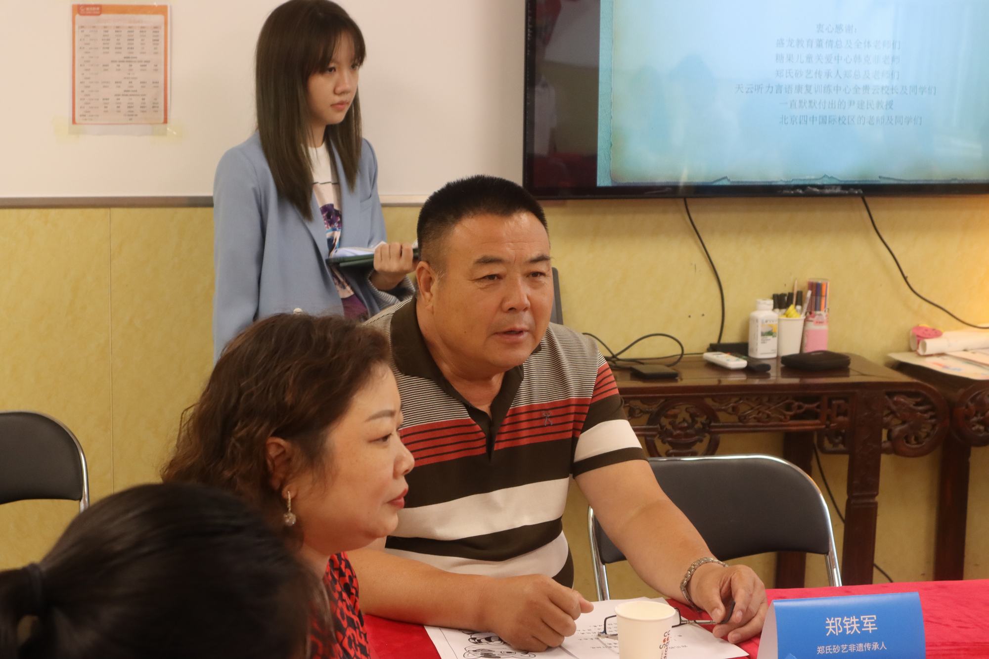 2022年8月9日,由中國首批在冊的中小學生志愿者王晰樂發起的“蒲公英”孤殘及留守兒童生存技藝培養項目在北京盛龍教育集團朝陽門校區宣布正式啟動。興隆縣鄭氏砂藝文化有限公司執行董事長、鄭氏砂藝第五代非物質文化遺產傳承人鄭鐵軍參加啟動儀式,并為“非遺”文化助愛心慈善事業作了致辭,寄希望于參加培訓的孤殘及留守兒童學會一項謀生技能,更好的傳承非物質文化遺產,最終實現文化脫貧、藝術致富的美好愿景。北京盛龍教育集團董事長董倩、蔡萬莉校長、鄭氏砂藝藝術總監(原清華大學文化與旅游產品設計研發中心總監)尹建民教授、北京天云聽力言語康復訓練中心全貴云校長及學生們、北京糖果兒童關愛中心韓克菲老師及北京四中國際校區的首批非遺手藝傳承小使者參加了項目啟動儀式。