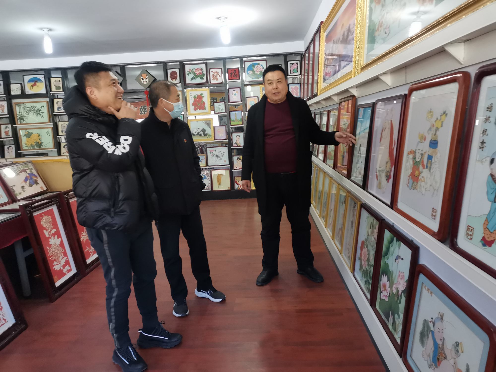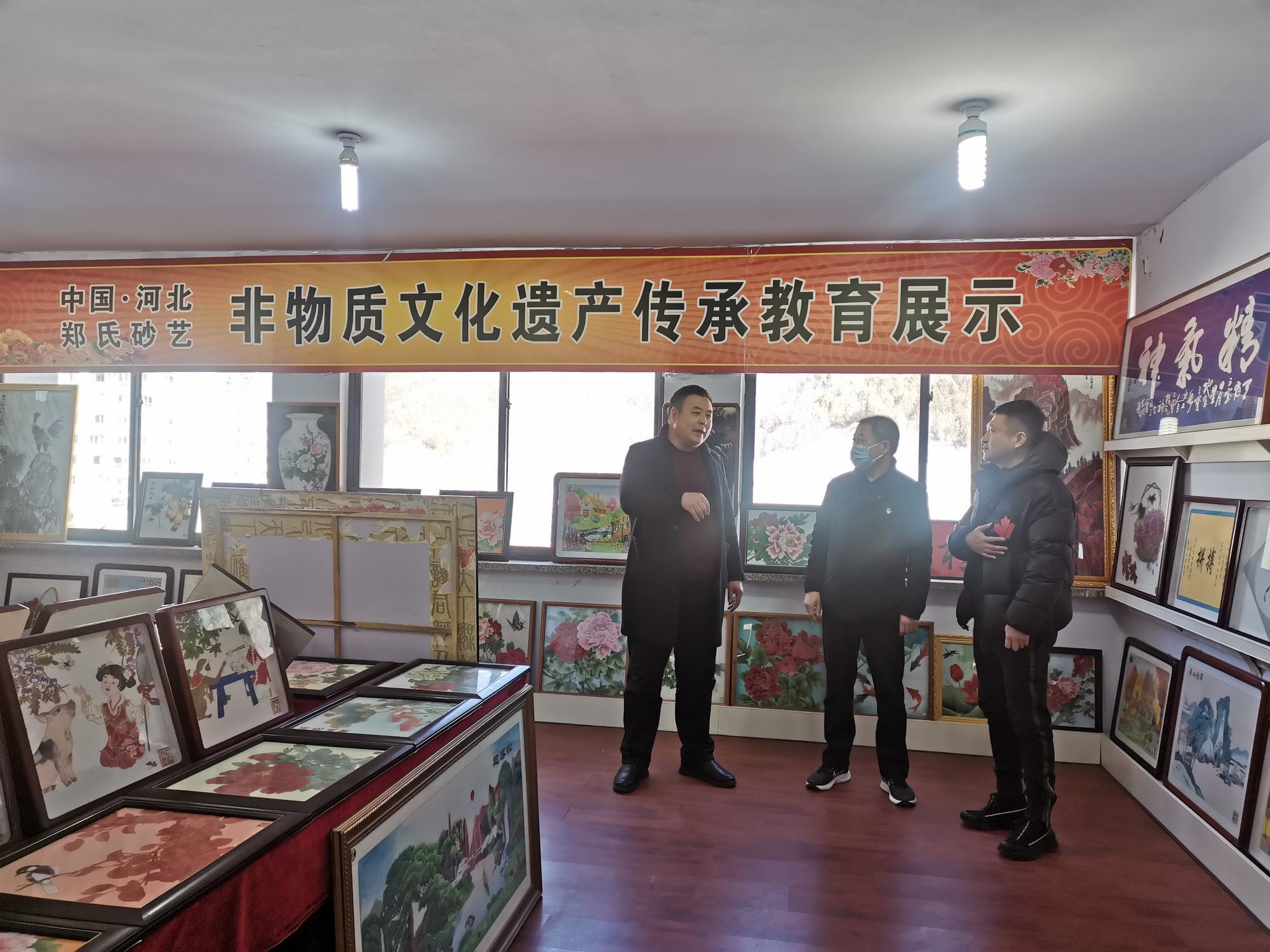 李曉軍主任和趙楠主任在鄭氏砂藝董事長鄭鐵軍的陪同下,來到了鄭氏砂藝非遺文化展廳,參觀了領(lǐng)導(dǎo)關(guān)懷展示墻、榮譽墻、鄭氏砂藝金銀絲彩砂畫和旅游伴手禮等,參觀期間,領(lǐng)導(dǎo)詢問了企業(yè)近年來運營銷售等情況,聆聽了鄭總講述企業(yè)近年來取得的成績和目前遇到的困難,李曉軍主任對企業(yè)多年來取得的成績給予肯定,對企業(yè)目前面臨的困難表示理解,并指出2023年隨著疫情政策放開和《中國式現(xiàn)代化興隆場景文化強縣工作方案》的出臺等,都是我縣文化產(chǎn)業(yè)發(fā)展的利好。鄭氏砂藝是極具興隆地區(qū)特色的文化產(chǎn)業(yè),要抓住機遇、勇于創(chuàng)新,把企業(yè)做大做強,加強企業(yè)非遺文化宣傳力度,將鄭氏砂藝(畫)做成具有興隆縣標(biāo)志性的文化產(chǎn)品,為推動文化興隆建設(shè)做出貢獻。
