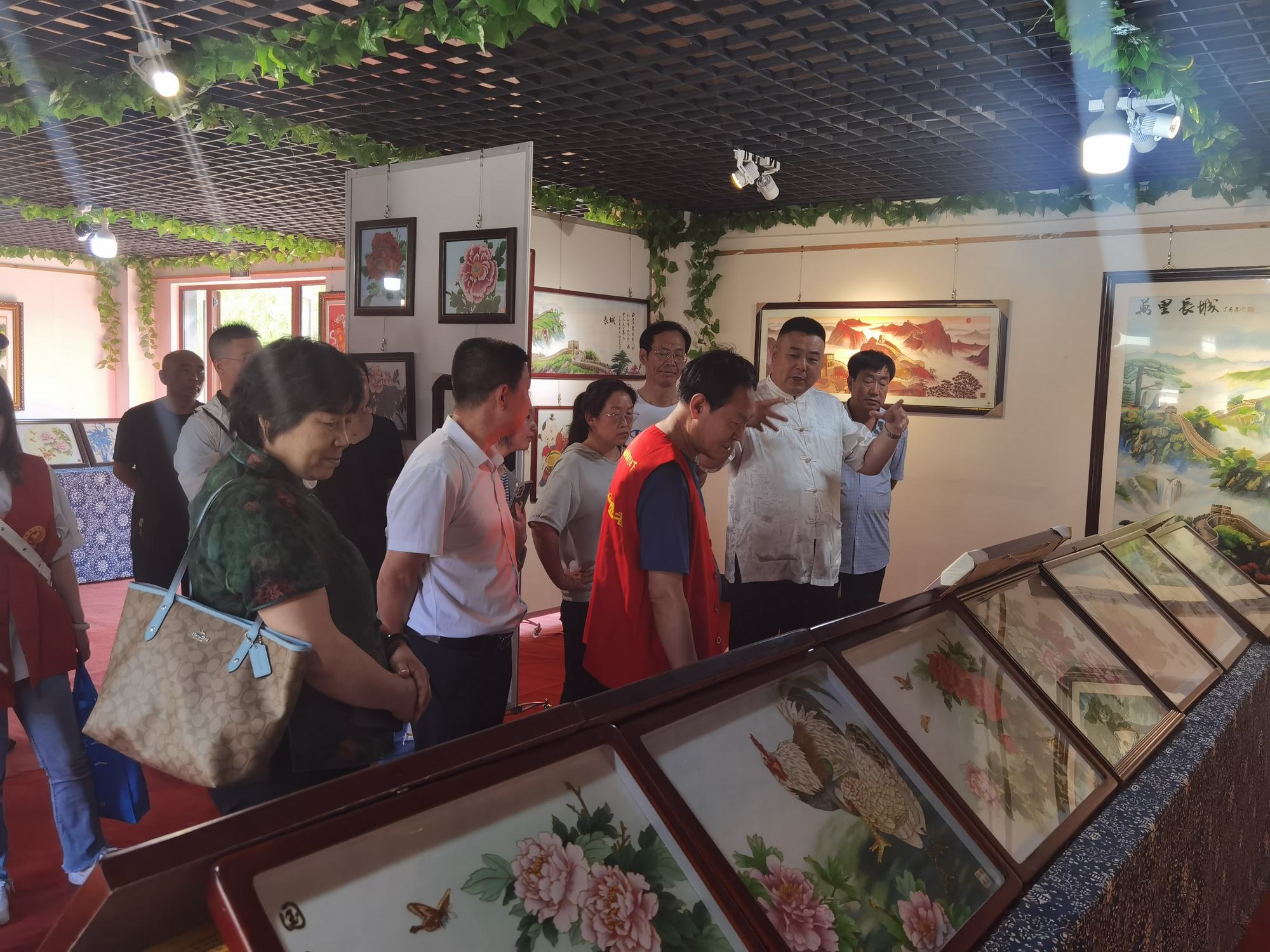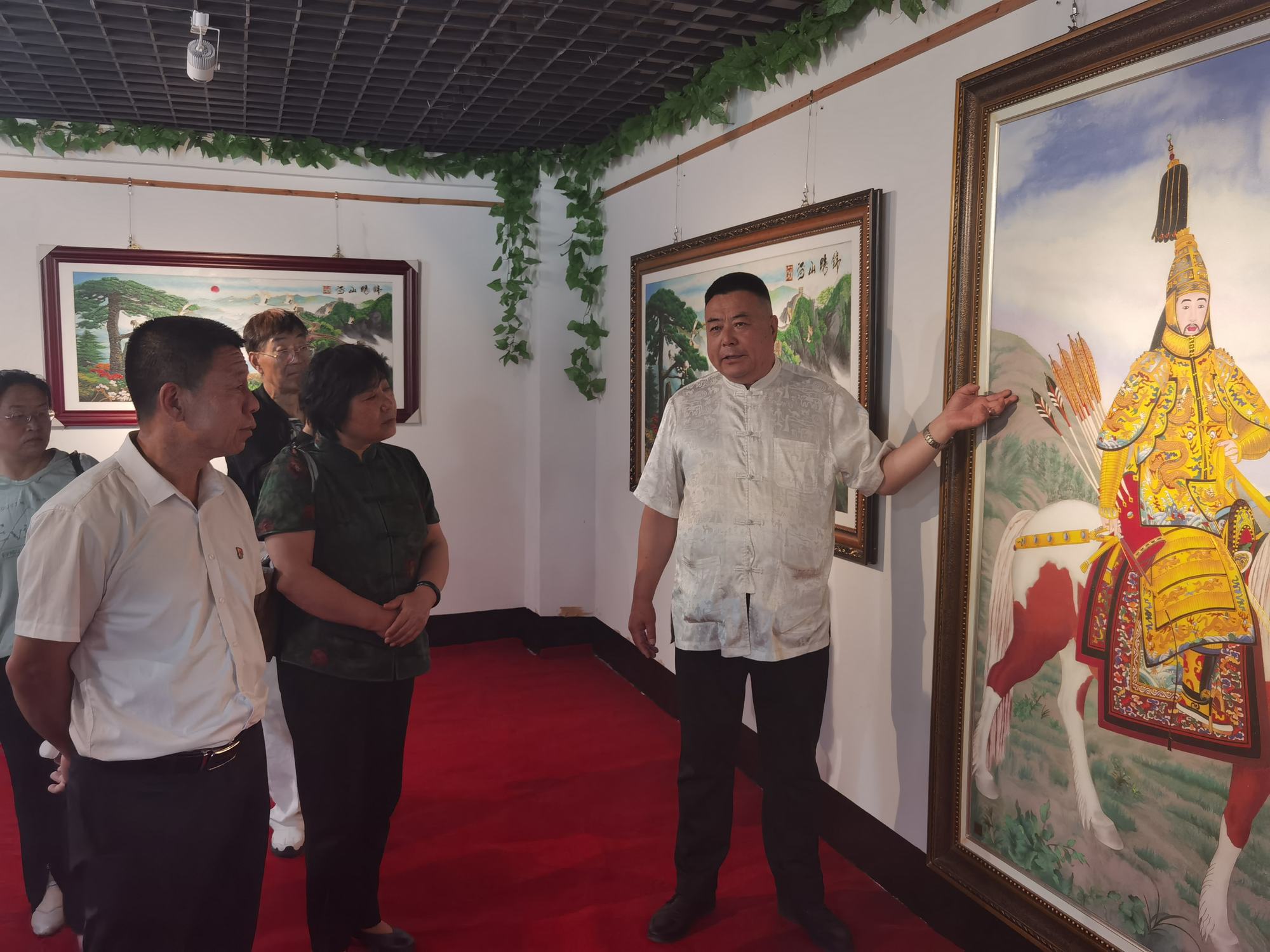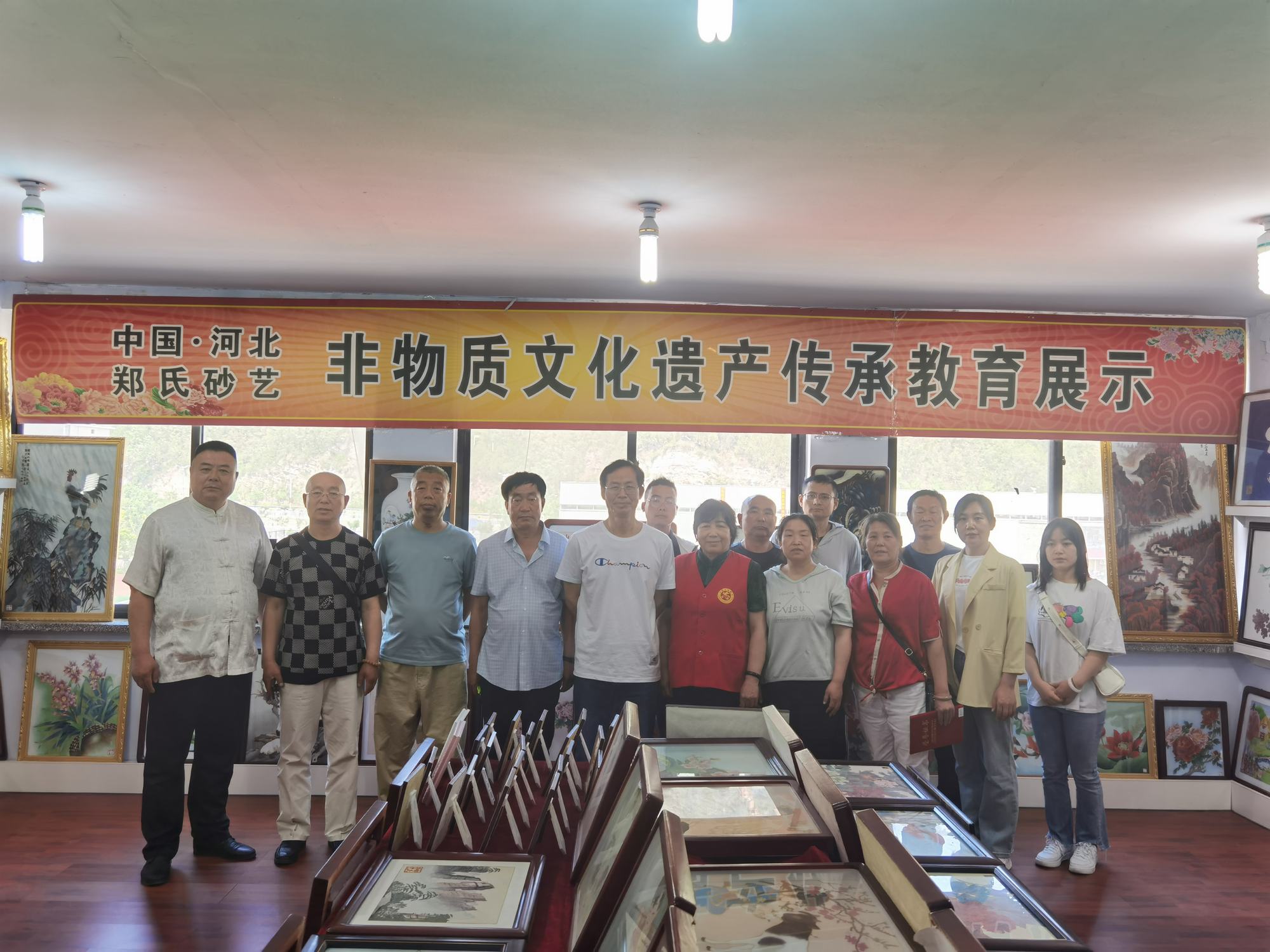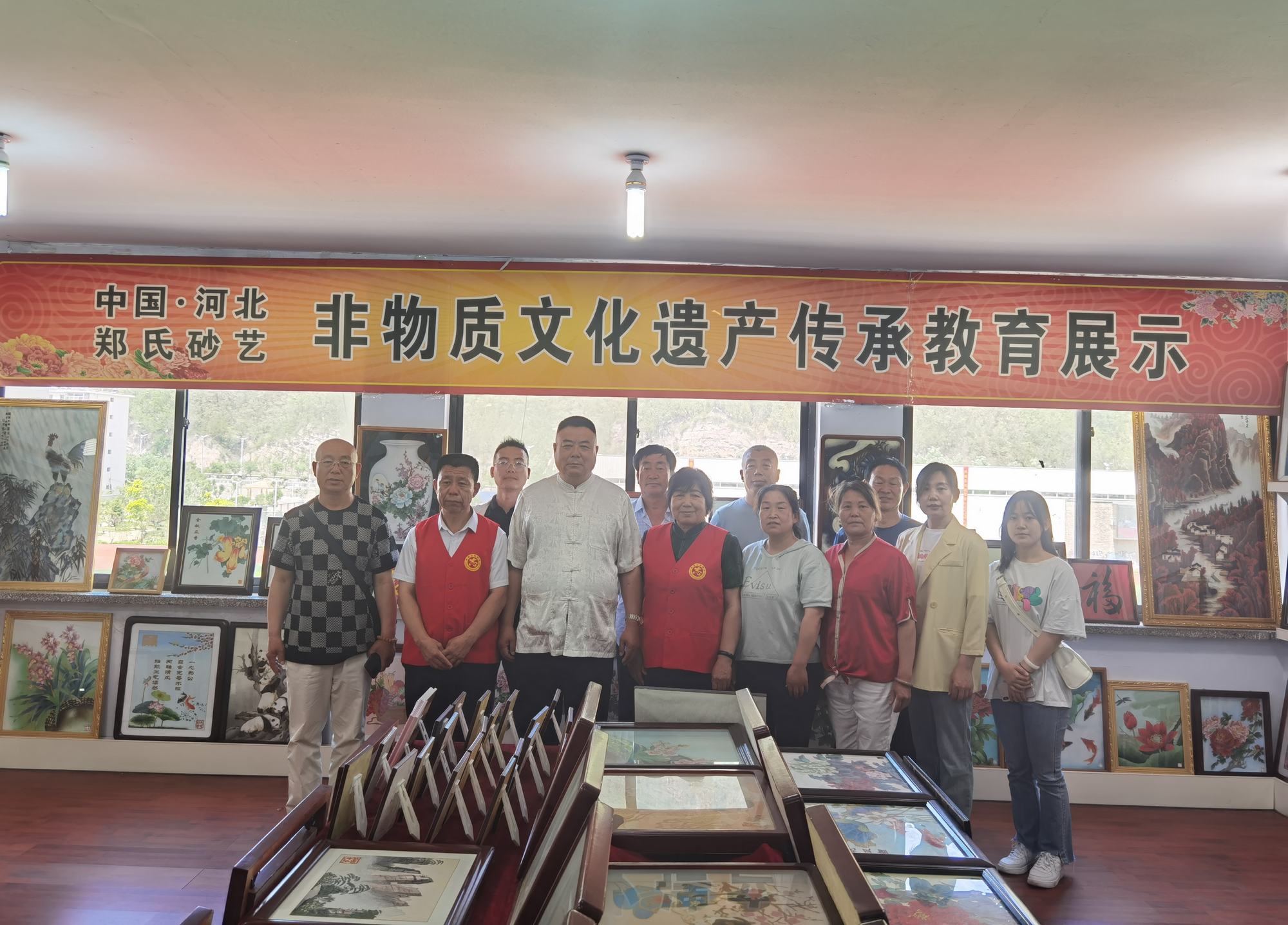 上午9時許,石俊鳳主席一行在鄭鐵軍主席的陪同下,參觀了鄭氏砂藝(畫)非遺博物館。博物館展出了鄭氏砂藝多年來在傳承和發展中的非遺砂畫精品3000余幅,這些作品能清晰地反映出鄭氏砂藝在不同時期的技術特點,同時也展現了鄭氏砂藝在非遺技藝和材料運用的不斷提升。參觀過程中,鄭鐵軍主席如數家珍般地向大家介紹了館內藏品,這些作品有的被各大博物館收藏,有的被其他國家作為國禮收藏,有的獲得了國家級獎項等等。參觀結束后,石俊鳳主席表示:“鄭氏砂藝這些年的發展是有目共睹的,是承德市文化企業中發展較快、規模較大的,鄭氏砂藝的發展經驗是值得我們學習和借鑒的,祝愿鄭氏砂藝在今后的發展中更上一層樓。同時鄭氏砂藝(畫)技藝是一項技術要求較高且畫面精美的非遺藝術,非常值得大家學習和交流,增加大家對鄭氏砂藝非遺文化的了解”。