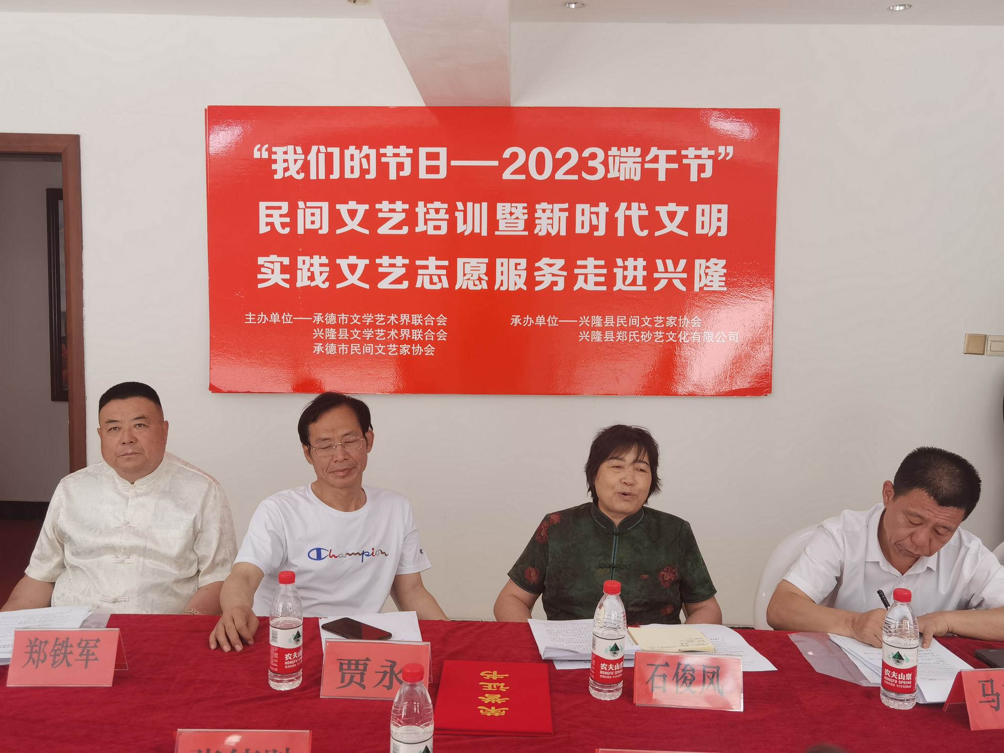 此次活動由承德市文學藝術界聯合會、興隆縣文學藝術界聯合會、承德市民間文藝家協會主辦,興隆縣民間文藝家協會、興隆縣鄭氏砂藝文化有限公司承辦。河北省民協副主席、承德市文聯副主席、承德市民協主席石俊鳳,興隆縣文聯主席賈永,承德市民協秘書長馬立國,承德市民協副秘書長龐麗君,承德市民協副主席、興隆縣民協主席鄭鐵軍,以及承德市各區縣民協領導和文藝家們一起參加了活動。