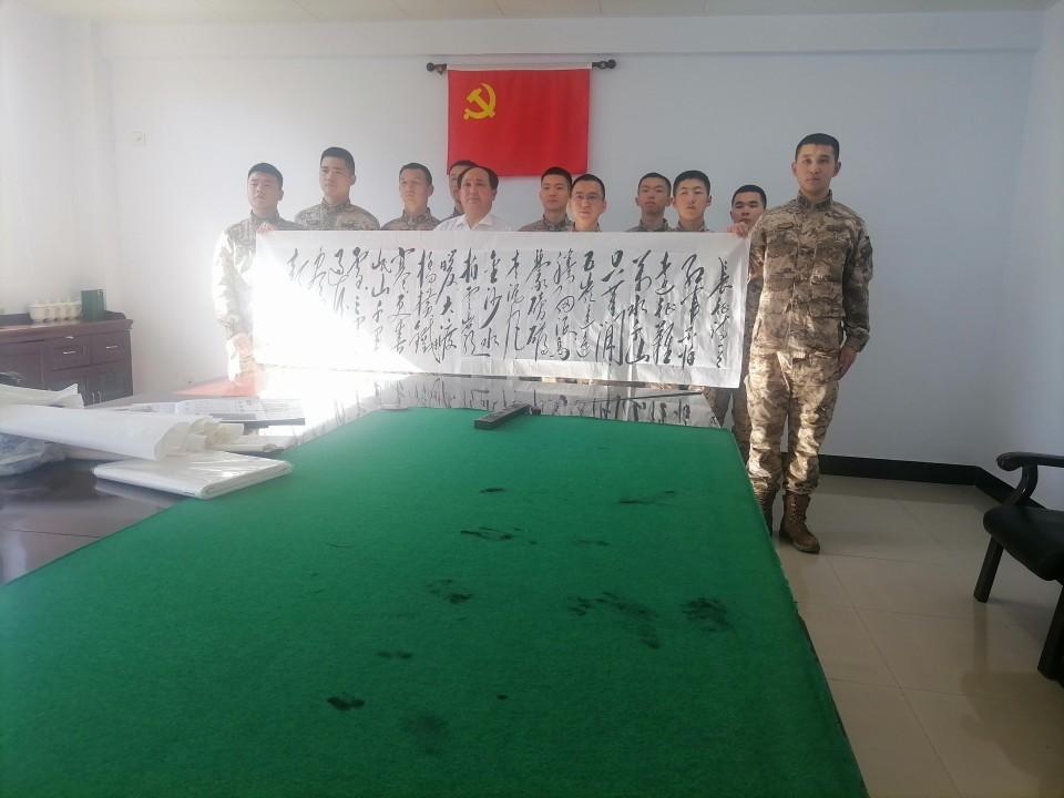 在此次活動中,特型扮演者趙士奎老師為承德支隊官兵題寫了充滿激情的詩詞《長征》及“軍魂”等書法作品,展現了其精湛的書法技藝和對傳統文化的深刻理解,贏得了官兵們的敬意。
