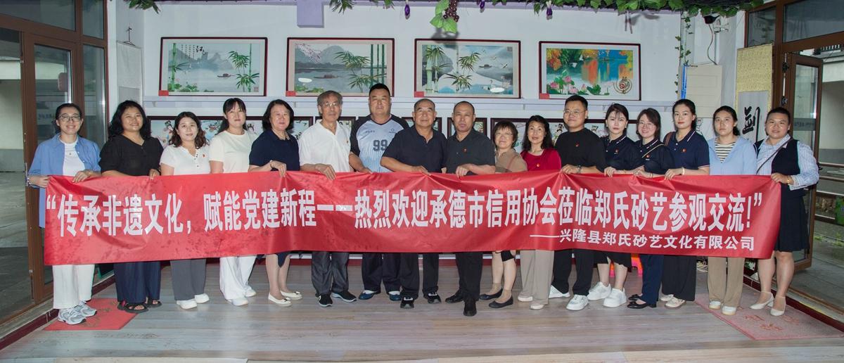 2025年7月1日,承德市信用協會組織理事會員單位及黨員代表一行,赴興隆縣鄭氏砂藝文化有限公司開展參觀考察暨黨建活動。本次活動以“傳承非遺文化,賦能黨建新程”為主題,旨在慶祝建黨104周年,深入貫徹習近平新時代中國特色社會主義思想和黨的二十大精神和黨紀學習教育要求,同時響應黨中央關于深入貫徹中央八項規定精神的工作部署。