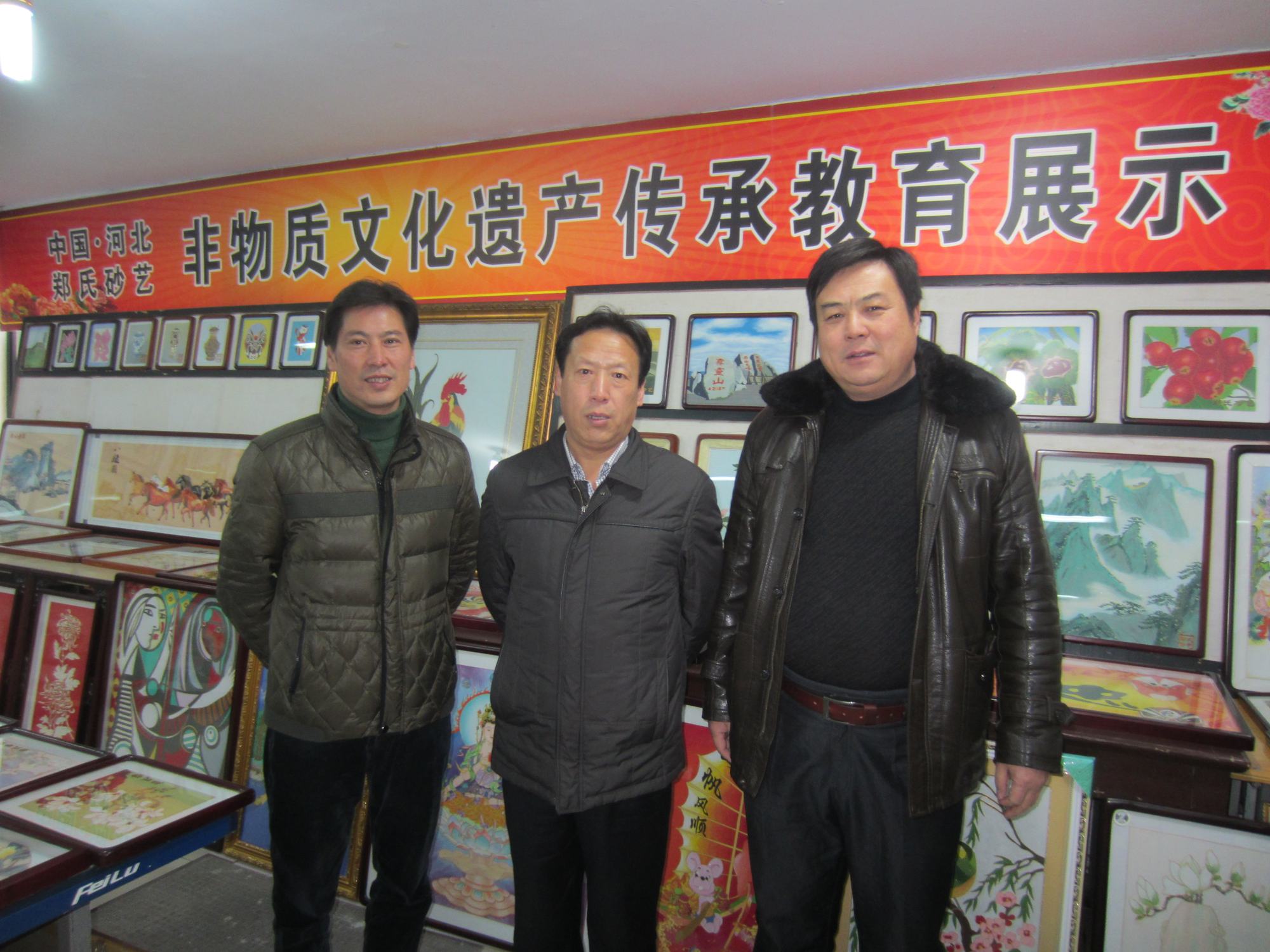 (中張東偉部長、左王俊杰副部長、右鄭鐵軍總經理)2014年12月9日,新上任的縣委常委、宣傳部長張東偉在副部長王俊杰的陪同下來到鄭氏砂藝公司,就我縣文化產業發展情況進行考察調研。張部長聽取了鄭鐵軍總經理的工作匯報,參觀了鄭氏砂藝展廳。在詳細了解了鄭氏砂藝的歷史起源、工藝流程、工藝特色、產品創新種類、產品銷路和企業發展目標等情況后強調:鄭氏砂藝作為我縣最具特色的文化產業,一定要抓住市場信息,不斷創新產品種類,提高產品質量,加大對外聯系和外宣力度,要抓住和利用好國家大力發展文化產業的各項政策,把企業做好做大,使之成為興隆的一張名片。