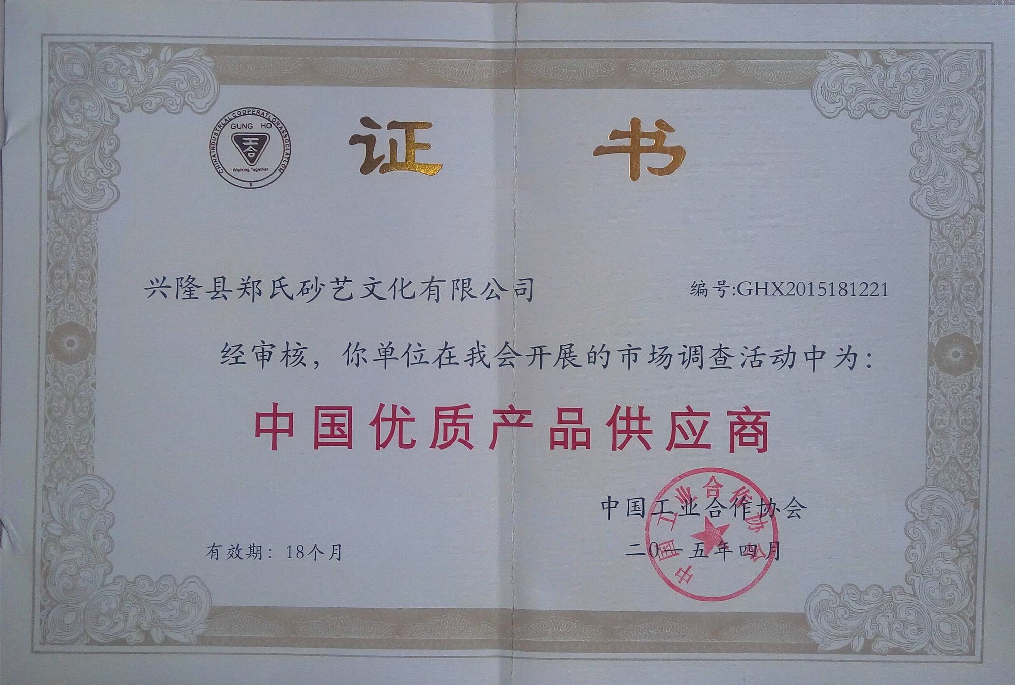 2015年4月,鄭氏砂藝被中國工業合作協會確定為《中國優質產品供應商》。