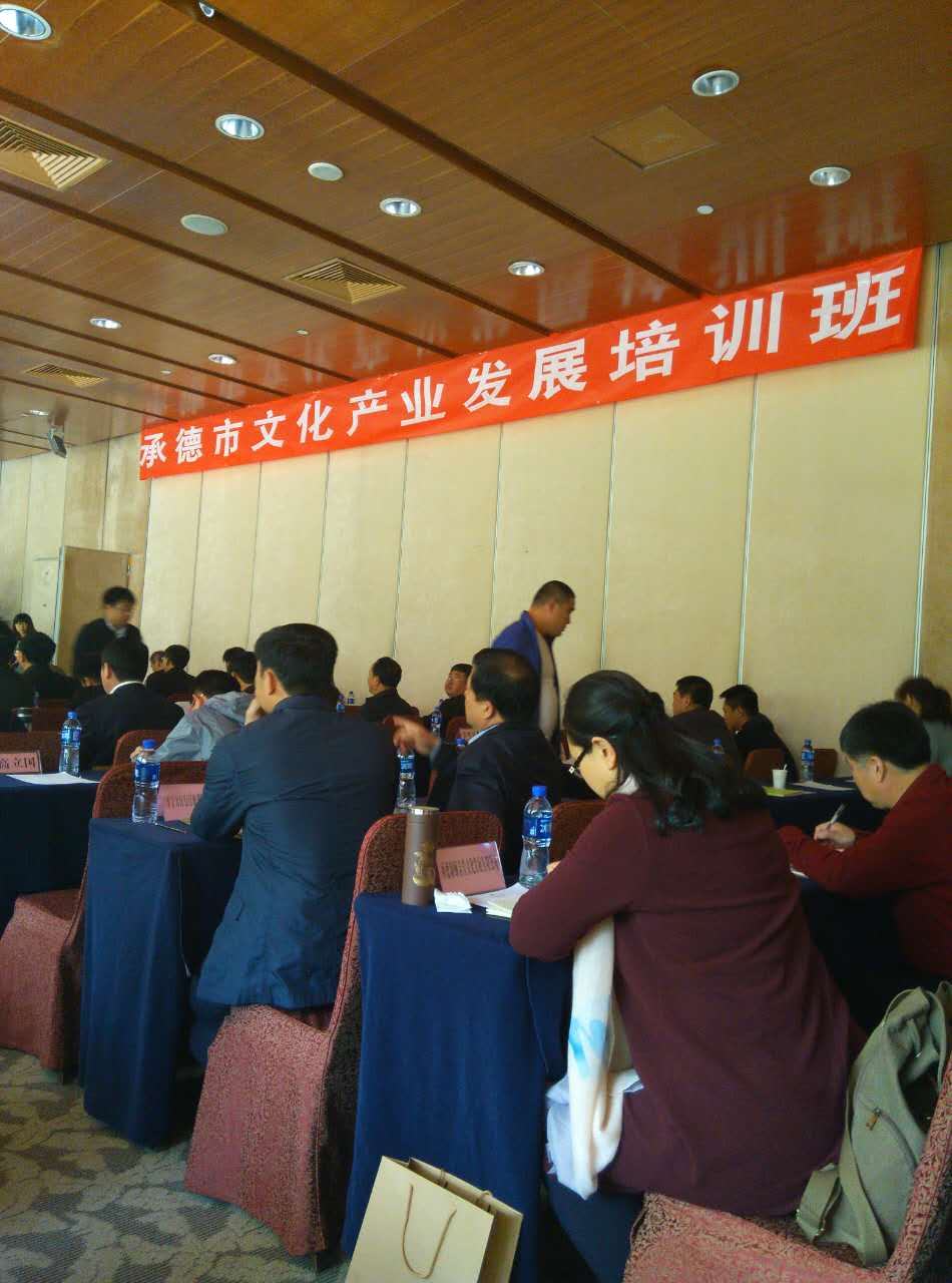 4月11日—14日,承德市文化產業發展培訓在北京舉行。鄭鐵軍總經理作為我縣文化產業實體企業唯一代表,參加此次培訓考察活動。i培訓期間,不僅聽取了北京大學陳少峰、魏鵬舉、王國華等多名專家教授關于文化產業發展方面的講課,還考察了北京中關村互聯網文化產業園、海淀區西山創意大道。培訓后鄭總感慨萬千,收獲頗豐。即看準了文化產業發展方向,又為自己事業發展找準了定位。
